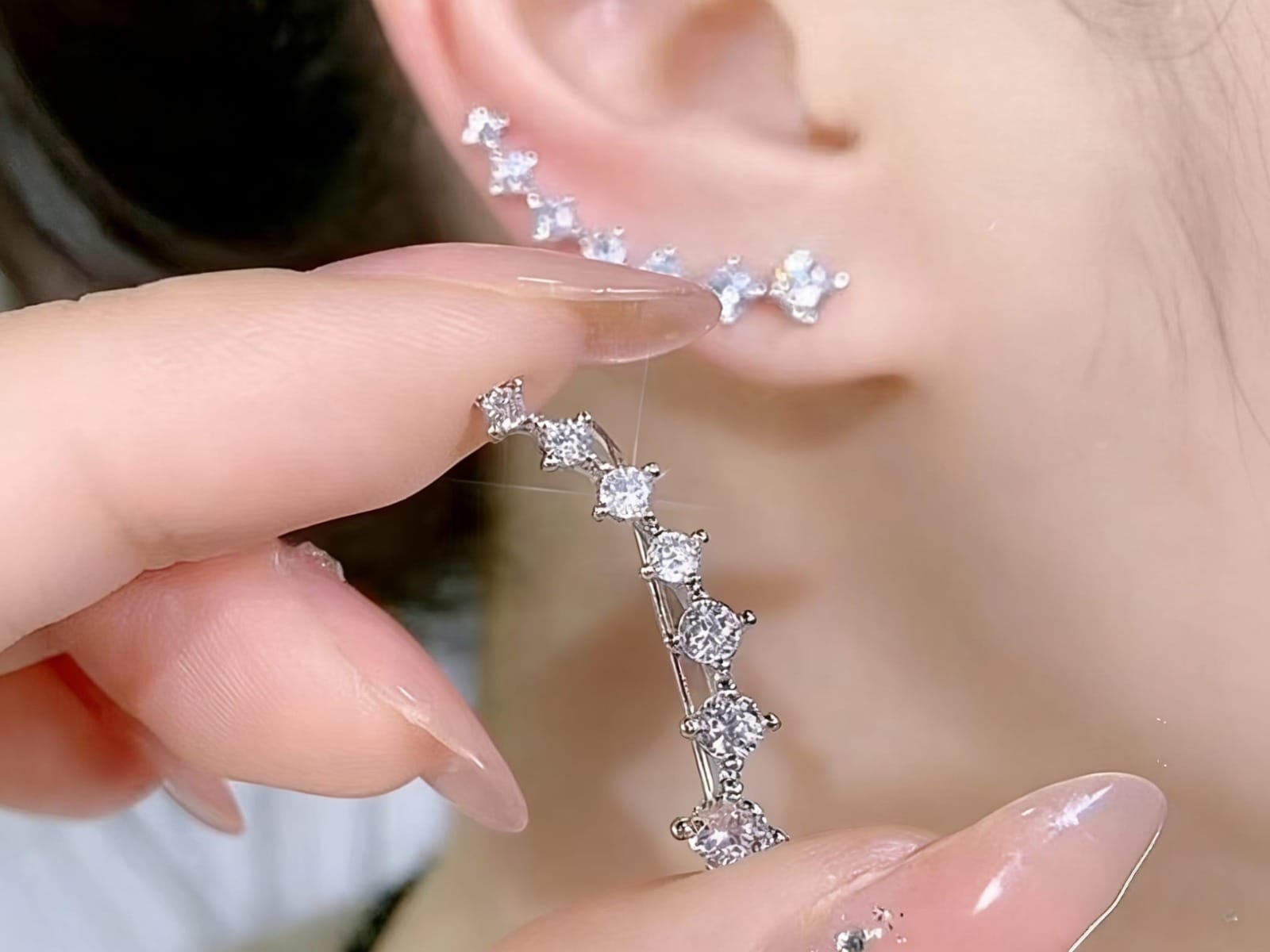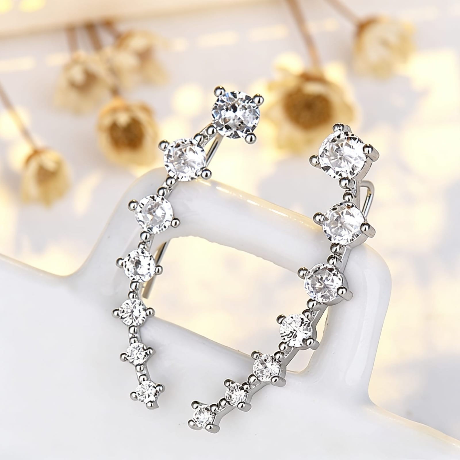 Orecchini a climber in puro argento 925, decorati con zirconi AAA di alta qualità. Il design lineare e brillante segue la curva dell’orecchio, creando un effetto luminoso e sofisticato. Leggeri e comodi da indossare, sono perfetti per elevare ogni look, sia di giorno che di sera. Ideali per chi ama un gioiello moderno e versatile.