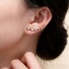 Orecchini a climber in rame con finitura argentata, decorati con zirconi AAA di alta qualità. Il design lineare e brillante segue la curva dell’orecchio, creando un effetto luminoso e sofisticato. Leggeri e comodi da indossare, sono perfetti per elevare ogni look, sia di giorno che di sera. Ideali per chi ama un gioiello moderno e versatile.